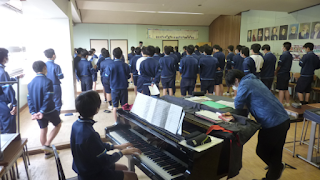以下の写真は、今日(3/10)2校時、第一音楽室と第二音楽室の練習風景です。生徒主体に練習が進み、表現やハーモニーの細かい部分の指導も全て生徒が行っていました。